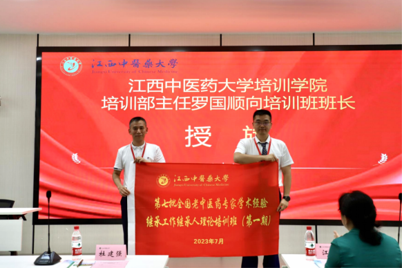 培训学院培训部负责人向本期培训班授予了班旗。继承工作指导老师代表蒋贵林勉励各位学员作为新一代中医人,更有责任和义务传承中医、继承中医、发展中医、弘扬中医,深入挖掘名师们的临床学术经验,以老师为楷模,争做良医。学员代表表示培训中将严格要求自身,刻苦努力,把全面提升专业素养能力作为主要任务,弘扬高尚医德,以优异成绩高水平完成师承项目,把自己锻炼成为老中医药专家学术经验优秀继承人。