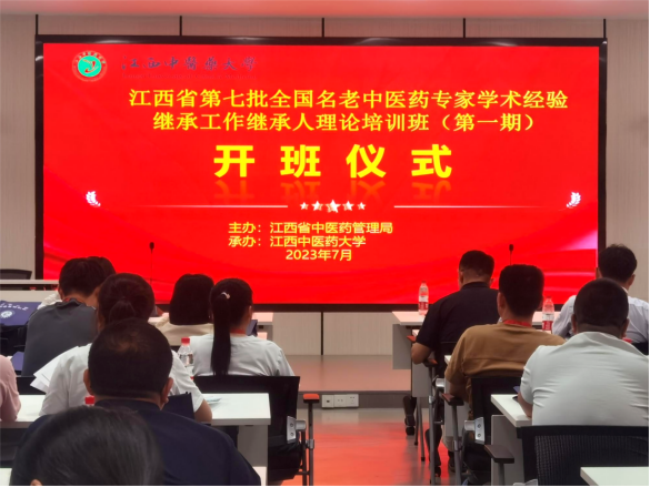 7月19日上午,由省中医药管理局主办、学校承办的我省第七批全国老中医药专家学术经验继承工作继承人理论培训班(第一期)开班式在阳明校区隆重举行。学校副校长杜建强,省中医药管理局科教处处长江蓉、副处长周盛大出席,华亿体育(中国)官方网站党总支书记饶印保主持,继承工作指导老师代表和来自省内中医药行业的80名继承人等参加。