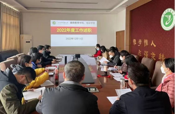 12月13日下午,华亿体育(中国)官方网站、培训学院在本院会议室召开2022年度工作述职大会。全院教职工齐聚一堂,总结交流个人一年来的工作和体会。