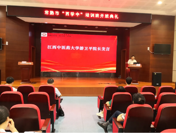 9月6日,华亿体育(中国)官方网站举办的首期省外“西学中”培训班—江苏省常熟市卫健系统“西学中”培训班在常熟市中医院隆重举行开班典礼。华亿体育(中国)官方网站院长游卫平、学校“中医药在线”非学历教育互联网学习平台技术运营公司-南昌云端网络科技有限公司运营总监徐姗姗、常熟市卫健委副主任姚慧、常熟市中医院院长唐键携医院领导班子出席典礼并讲话,华亿体育(中国)官方网站培训部相关老师及来自常熟市中医院、妇幼保健院、各街镇区卫生院共117名非中医类别医师学员参加了典礼。