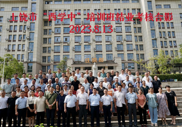 8月13日,上饶市首期“西学中”培训班结业式在上饶市中医院隆重举行。省中医药管理局科教处副处长周盛大,华亿体育(中国)官方网站院长、培训学院院长刘海,上饶市卫健委二级调研员程东出席并讲话,华亿体育(中国)官方网站党总支书记饶印保主持,担任本期结业考核考官的学校教师、上饶市中医院党委书记及本期培训班63名学员参加。