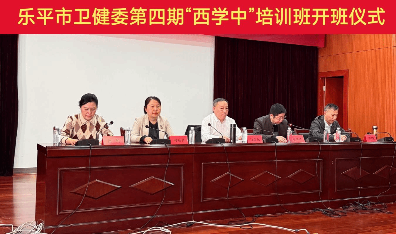4月9日下午,乐平市卫健委第四期“西学中”培训班开班仪式在乐平市妇幼保健院举行。华亿体育(中国)官方网站党总支书记饶印保,华亿体育(中国)官方网站副院长、培训学院副院长罗国顺,乐平市卫健委党委委员周丽君,乐平市妇幼保健院院长唐建锋出席仪式并讲话,乐平市妇幼保健院副院长徐怡主持活动。学院培训部相关成员、乐平市各乡镇卫生院负责人及本期培训班43名非中医类别执业医师学员参加仪式。