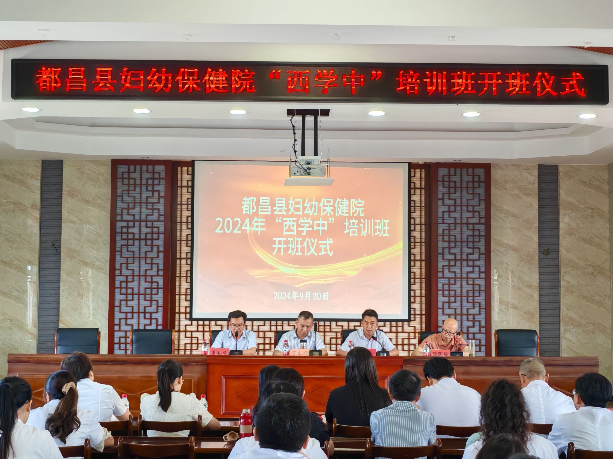 9月20日下午,都昌县妇幼保健院“西学中”培训班在该院顺利开班。华亿体育(中国)官方网站(培训学院)副院长罗国顺,都昌县卫健委党委书记、主任江平出席开班仪式并讲话。都昌县妇幼保健院党委书记周和寅主持仪式。华亿体育(中国)官方网站(培训学院)培训部行政助理尹文琦向培训班负责人授班旗,都昌县妇幼保健院院长欧阳旻、副院长刘青华、医务科负责人及 51名非中医类别医师学员参加活动。
