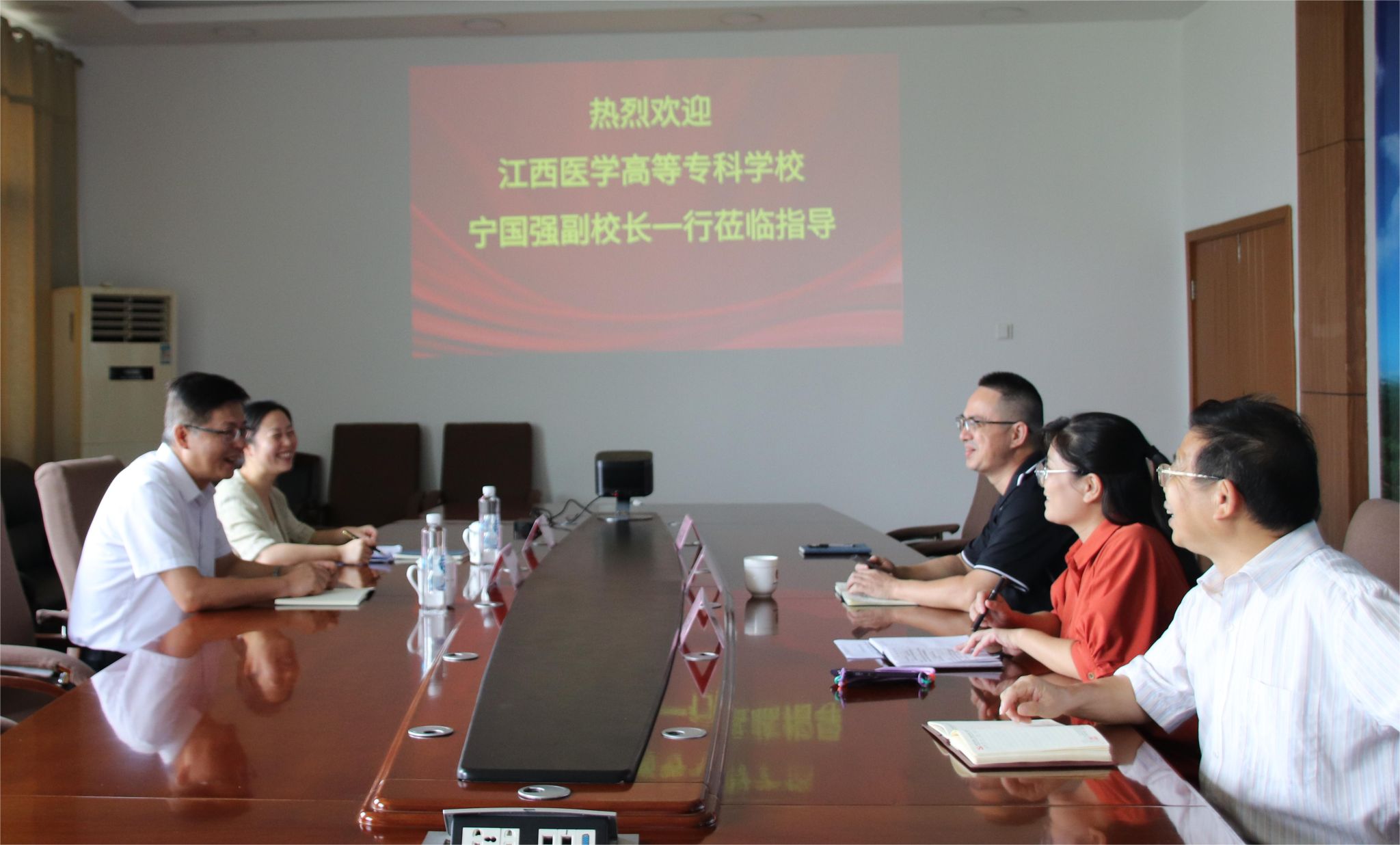 9月24日,江西医学高等专科学校副校长宁国强、华亿体育(中国)官方网站副院长石楠一行2人到我院调研,学院院长刘海,办公室主任罗时峰、自考办主任袁胡军、培训部副主任李红娟、办公室胡海春参加调研座谈。