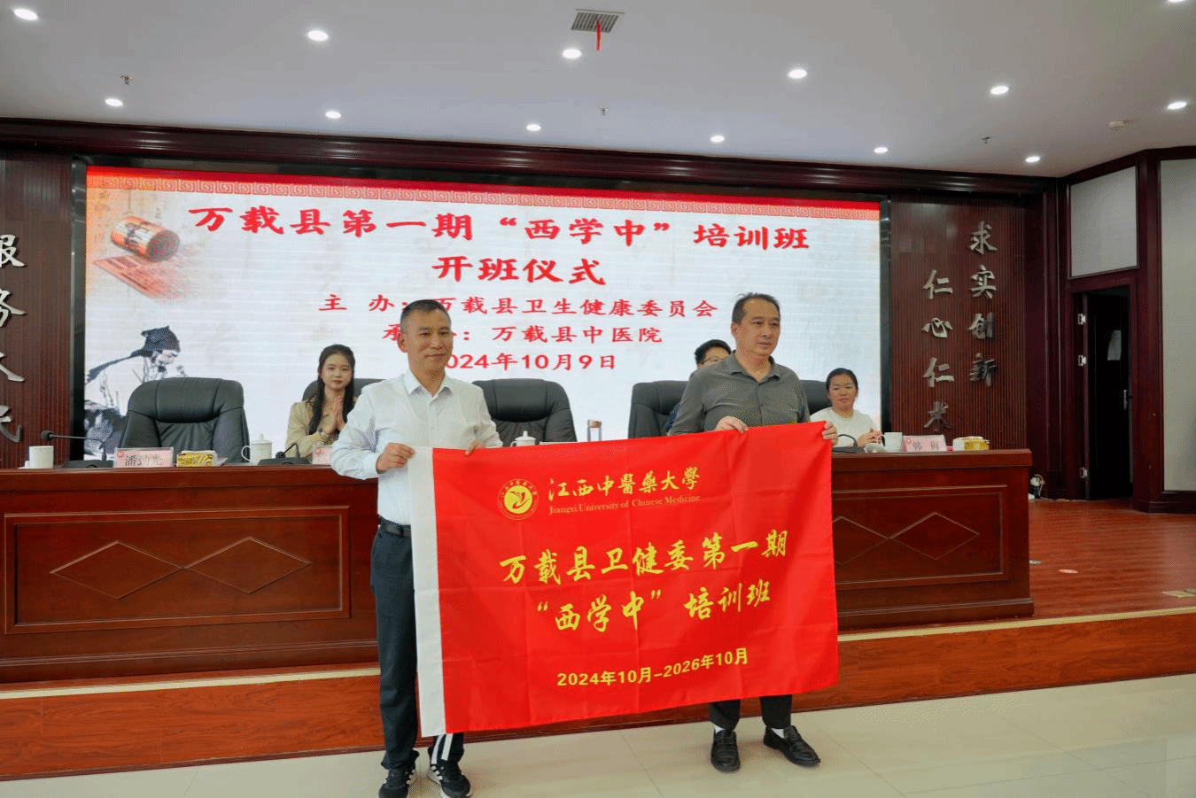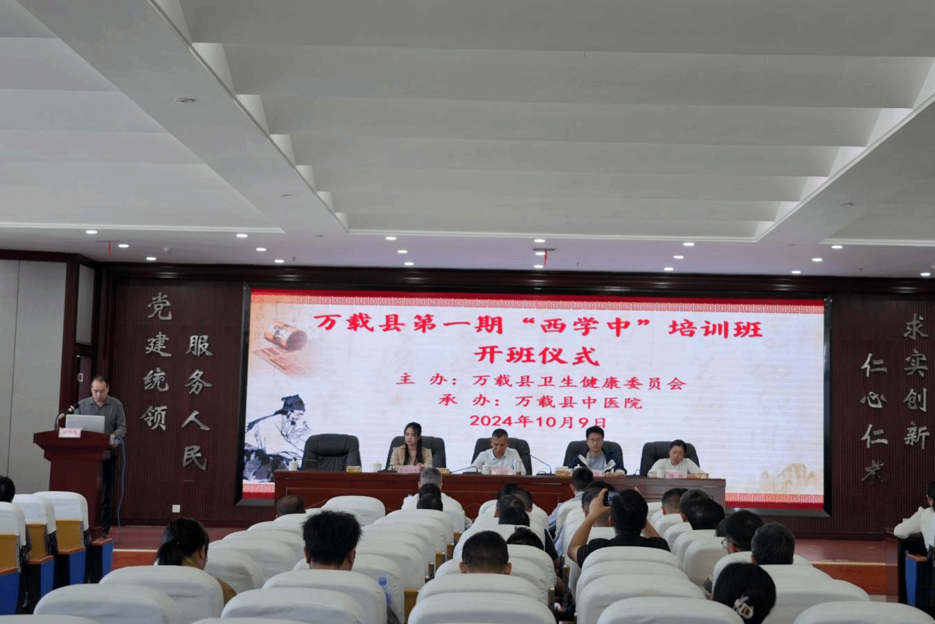 10月9日下午,万载县第一期“西学中”培训班在万载县中医院开班。华亿体育(中国)官方网站(培训学院)副院长罗国顺,万载县卫健委党委委员韩梅,万载县中医院党委书记潘劲光出席开班仪式并讲话。万载县中医院党委委员、副院长易文彪主持仪式。万载县中医院副院长周武云作为学员代表发言。万载县中医院领导班子,华亿体育(中国)官方网站(培训学院)培训部相关成员及万载县卫健系统81名非中医类别医师学员参加活动。