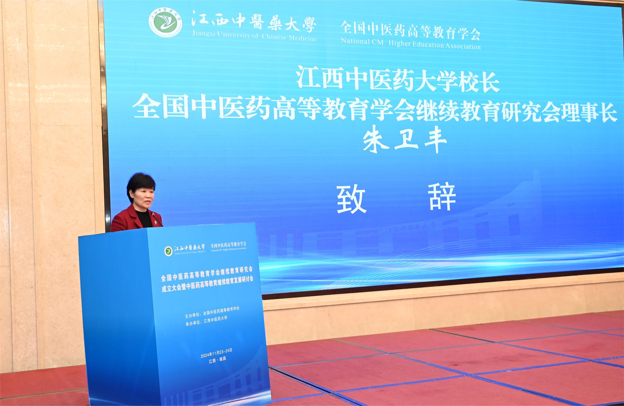 朱卫丰在致辞中对学校近年来办学成就进行介绍,她指出,党的二十届三中全会统筹推进教育科技人才体制机制一体改革,学校高度重视继续教育工作,本次继续教育研究会的成立是大家共同的事业和梦想。我们要朝着“建设行业标杆学会、推进学术繁荣发展、促进中医药传承创新、实施数字教育行动”目标不断前行,在顶层设计、体制机制、学术研究、信息化建设、中医药文化传承创新等方面持续发力,以饱满的热情、坚定的信念和扎实的业绩,为实现教育现代化贡献研究会的智慧和力量。
