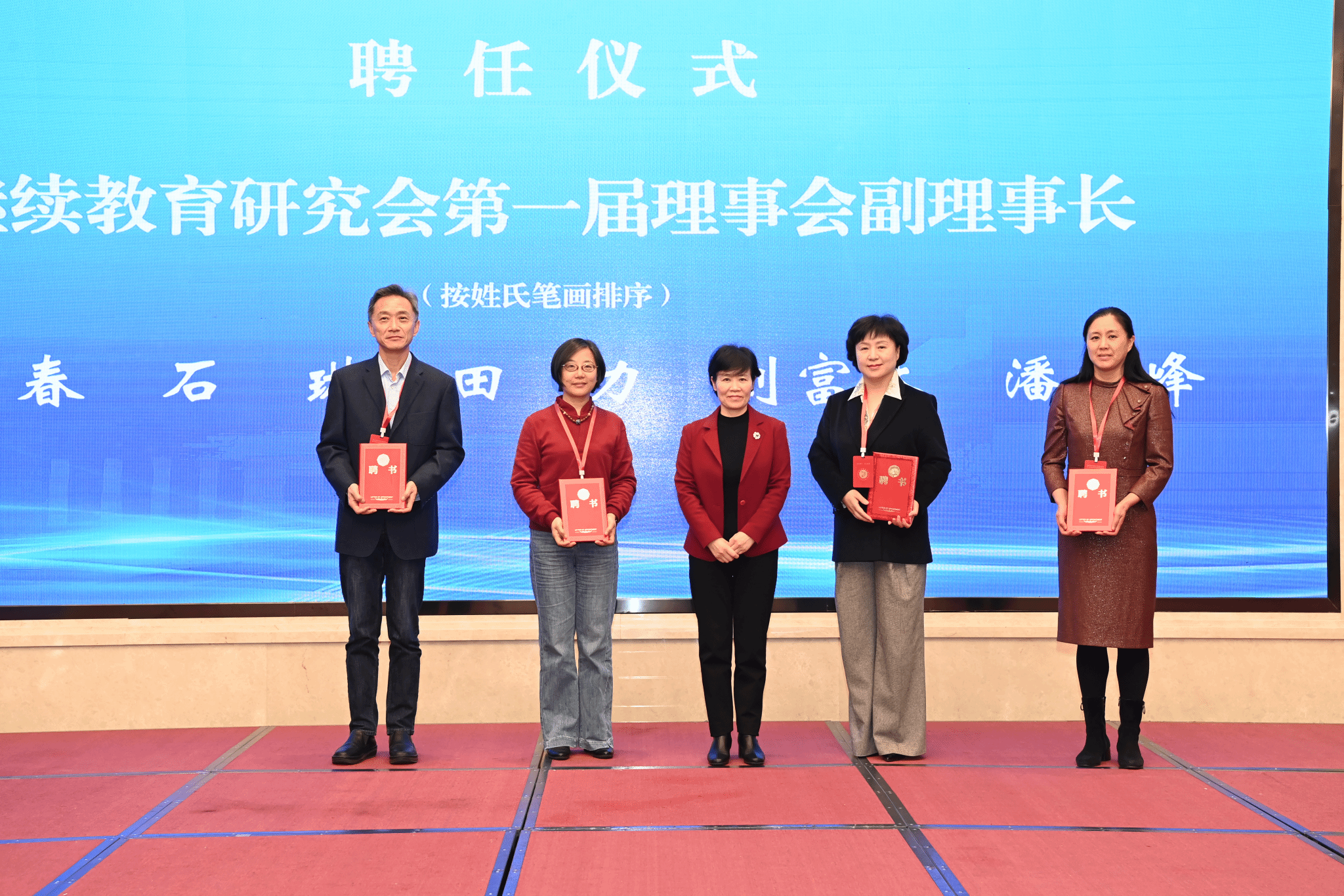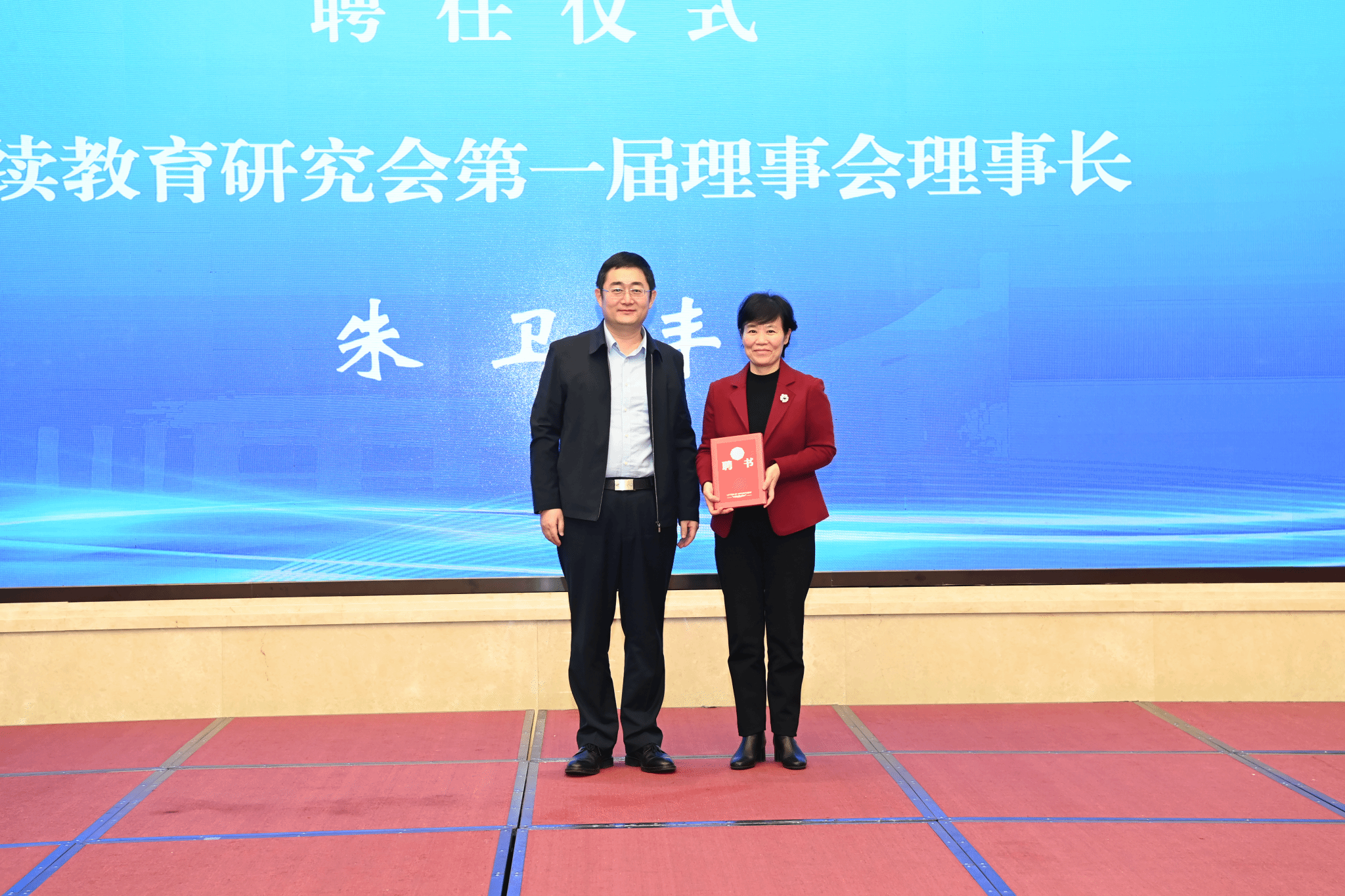 第八届理事会副理事长周景玉为继续教育研究会理事长颁发聘书