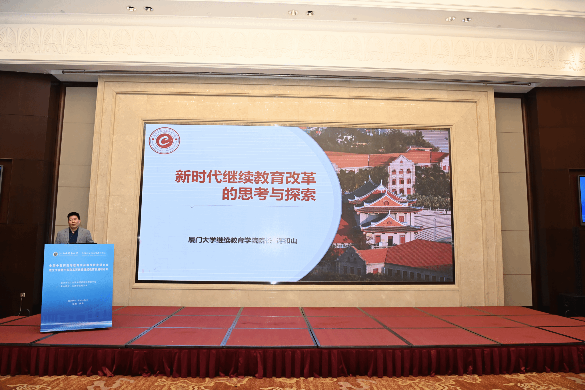 厦门大学华亿体育(中国)官方网站院长许和山以《新时代继续教育改革的思考与探索》为题作报告。他围绕坚持问题导向,继续教育之目标任务;坚持人民至上,继续教育之根本立场;坚持守正创新,继续教育之科学认识;坚持系统观念,继续教育之思想方法等四个方面进行报告。