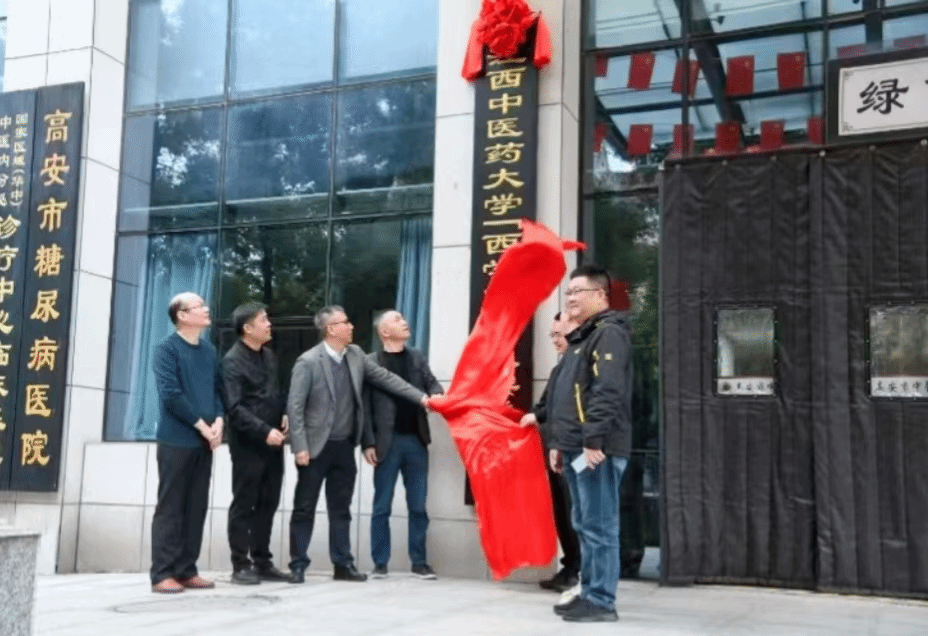 刘海、罗国顺、黄业元、陈卷伟及刘三权等高安市中医院领导班子成员为江西中医药大学“西学中”临床实践基地揭牌。据悉,高安市中医院目前是首个由我校授权的“西学中”临床实践基地。