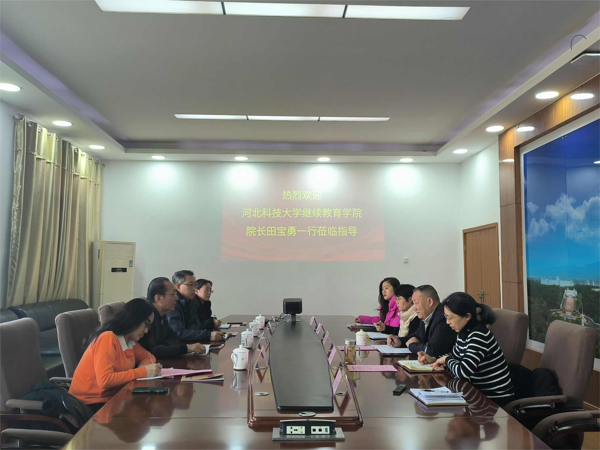 会上,双方就“学历教育保持稳定、非学历教育扩大规模的目标策略”展开了深入的交流讨论。在交流过程中,田宝勇对我校特色鲜明的培训项目给予了高度评价。通过深入探讨,拓宽了大家思维视野,双方期望未来能够实现合作,达成资源共享、互利共赢的局面,共同推动继续教育事业发展。