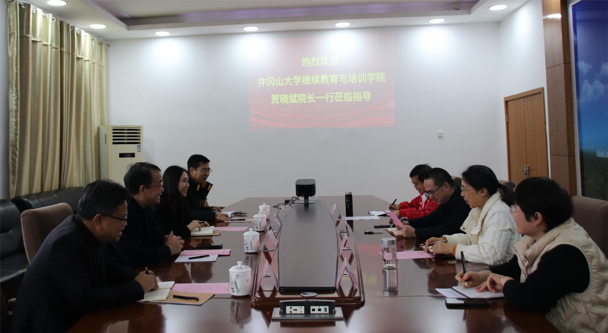 2月27日,井冈山大学继续教育与培训学院院长贺晓斌一行4人到我院调研,学院院长刘海,副院长吕宇虹,办公室主任罗时峰、教务科科长王君参加调研座谈会。