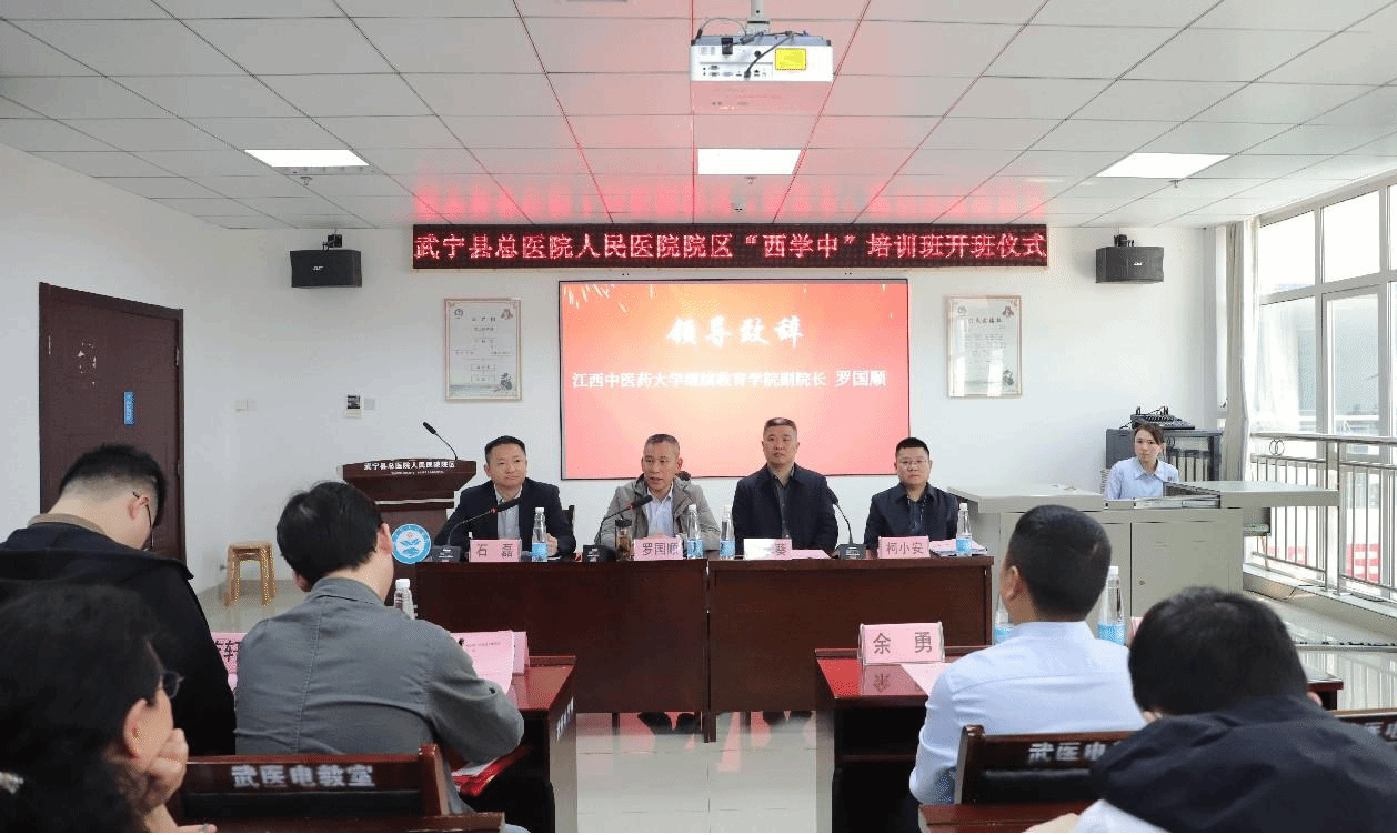 3月26日上午,武宁县人民医院“西学中”培训班开班仪式在该院举行。华亿体育(中国)官方网站(培训学院)副院长罗国顺,武宁县卫健委党组书记、主任雷李葵,武宁县人民医院院长柯小安出席仪式,武宁县人民医院党委书记石磊主持活动。学院项目组成员以及武宁县人民医院48名非中医类别医师参加活动。